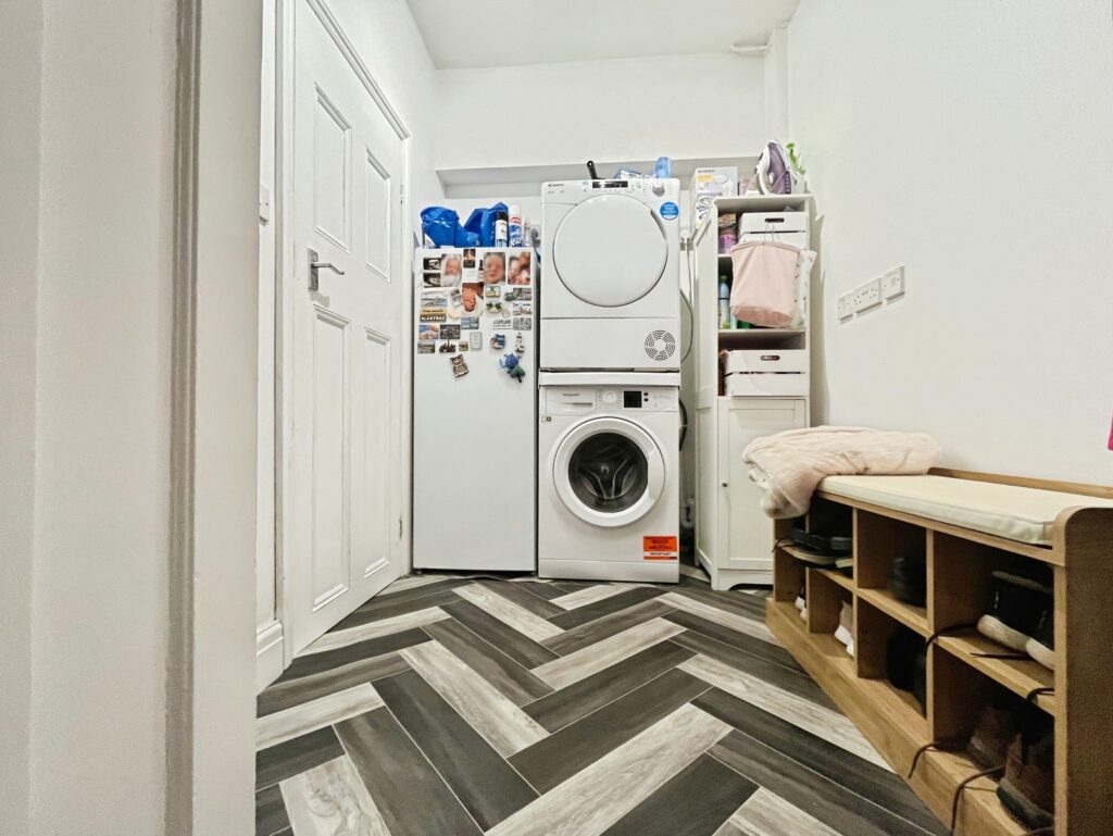 Plumbing for washing machine, space for tumble dryer, space for fridge/freezer, under stairs storage area, door through to w.c.