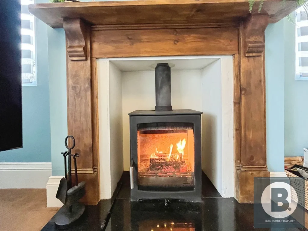 Seating area to front with large double glazed window, ideal to enjoy the surroundings, two double glazed windows to side aspect, coving to ceiling, feature fire surround with log burner, radiator, television point.
