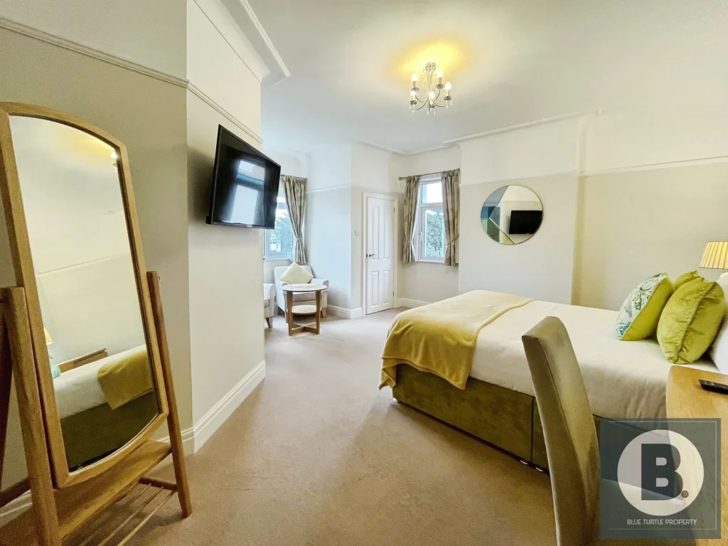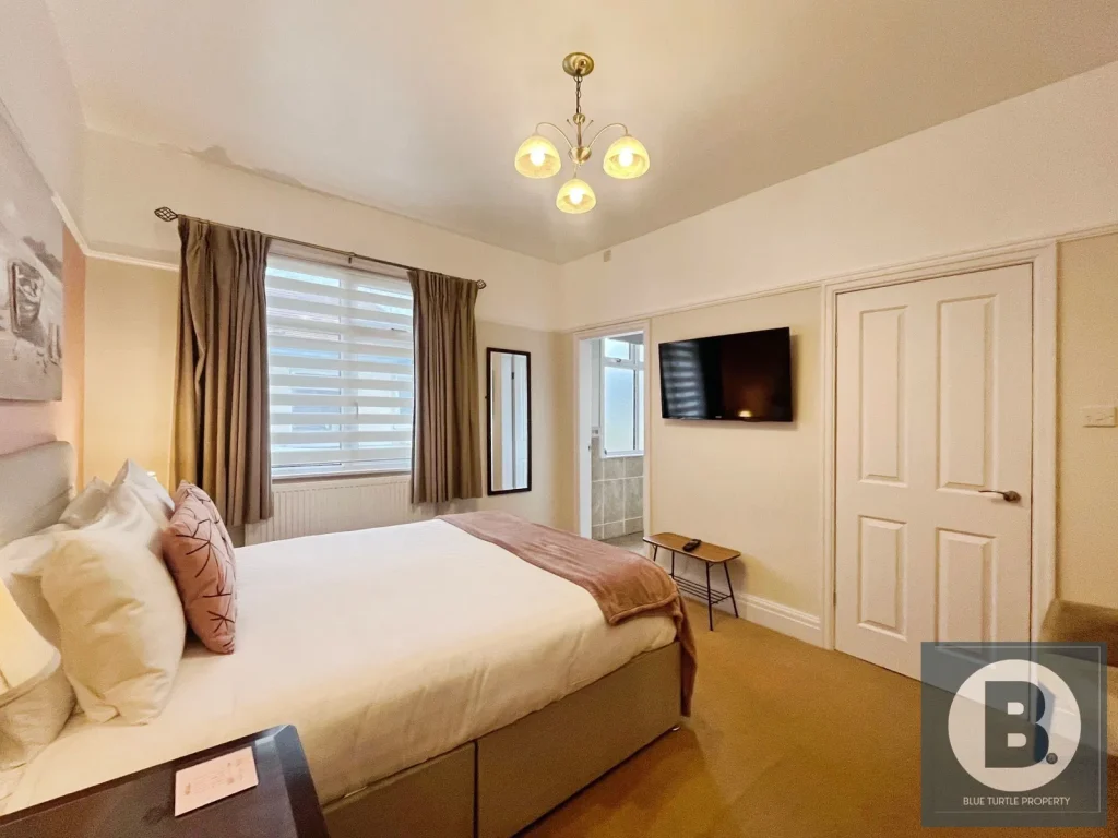 Double glazed windows to side and front aspects, coving to ceiling, picture rail, built in storage cupboard with hanging space, television point, radiator, door through to en-suite shower room.
