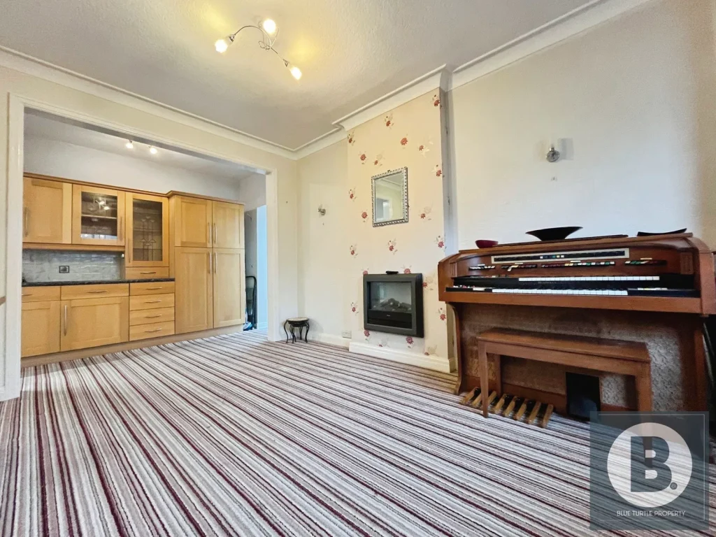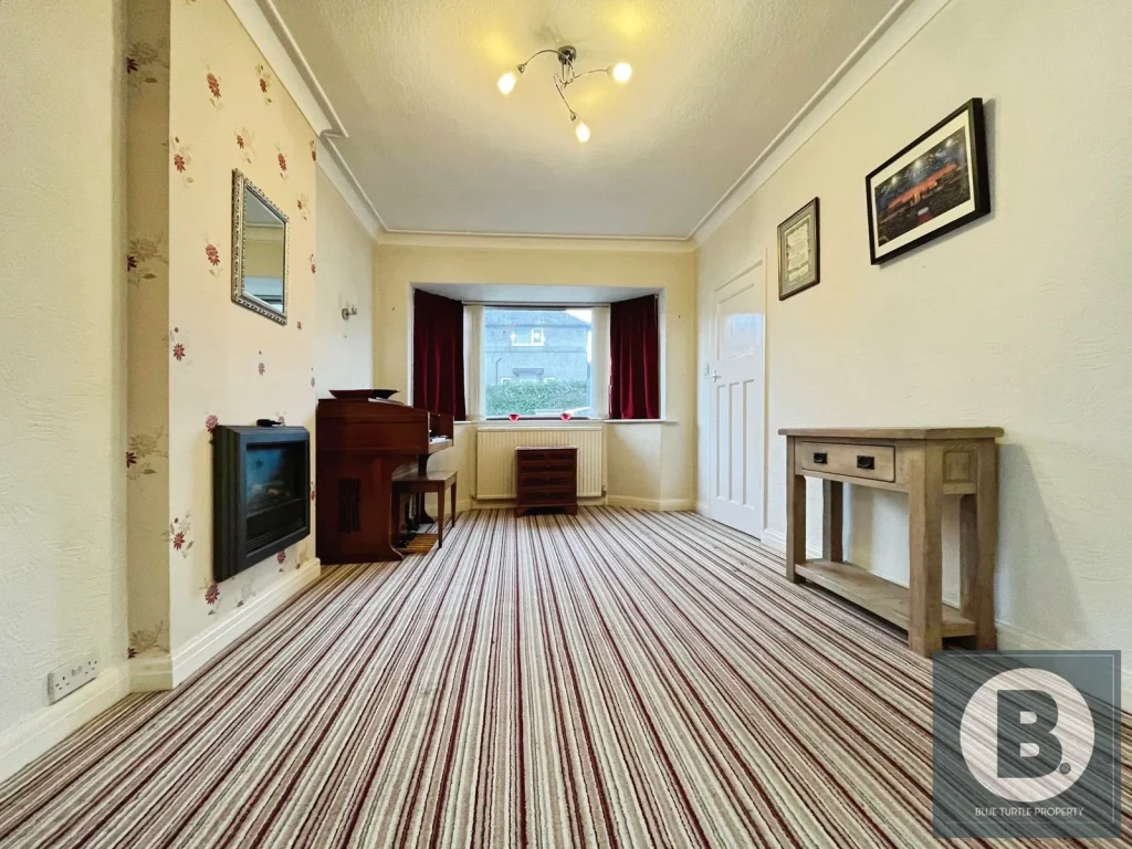 Double glazed windows to front and rear aspects, feature fire surround with inset coal effect fire, coving to ceiling, television point, radiator, cupboard housing hot water tank.