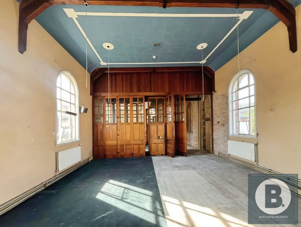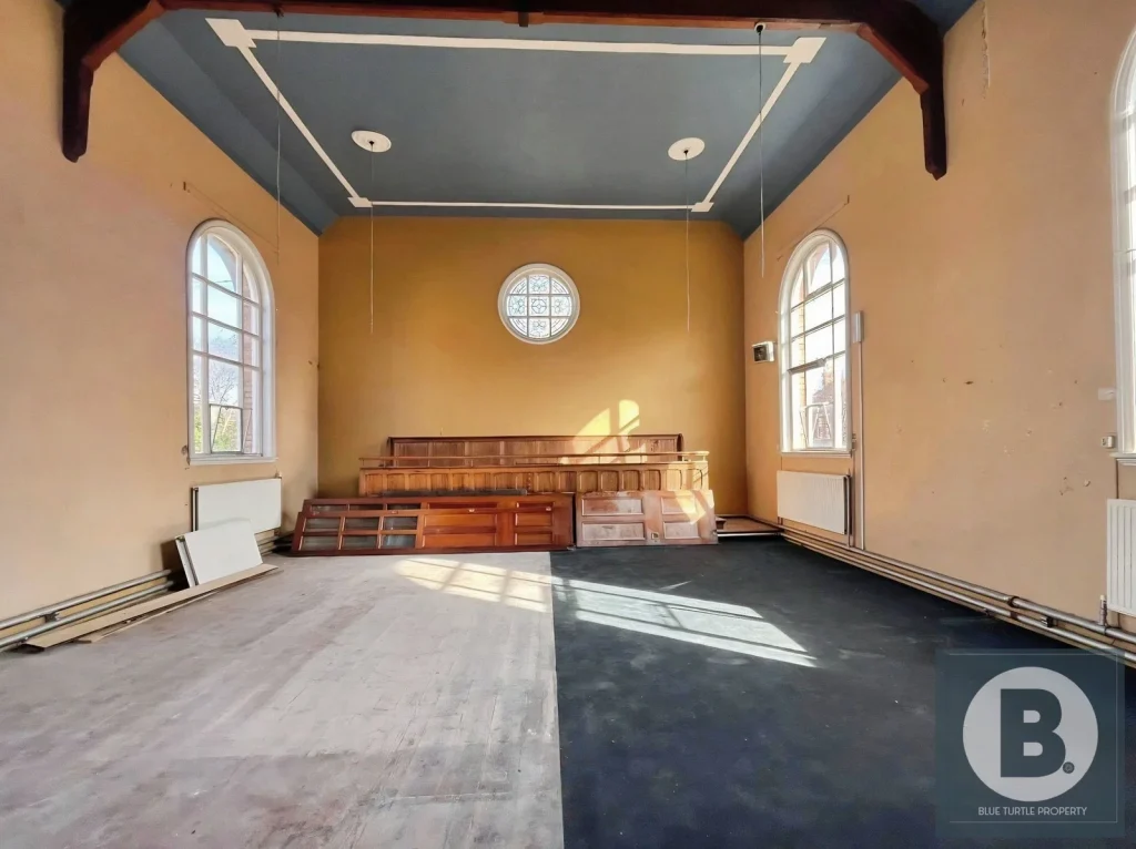 Blue Turtle Property is pleased to present an exciting opportunity to acquire a detached, brick-built Grade II Listed former place of worship, extending to approximately 116m², set within a predominantly residential area of Colwyn Bay, and benefitting from solar panels. Believed to date back to circa 1900, the property offers a wealth of character and original features, including a flexible layout with pitch pine screens, and would benefit from refurbishment. The main hall includes a kitchen, WC, and ramped access, and the property also benefits from a self-contained two-bedroom caretaker’s cottage. Offered vacant with no onward chain, it presents strong redevelopment potential (STP).