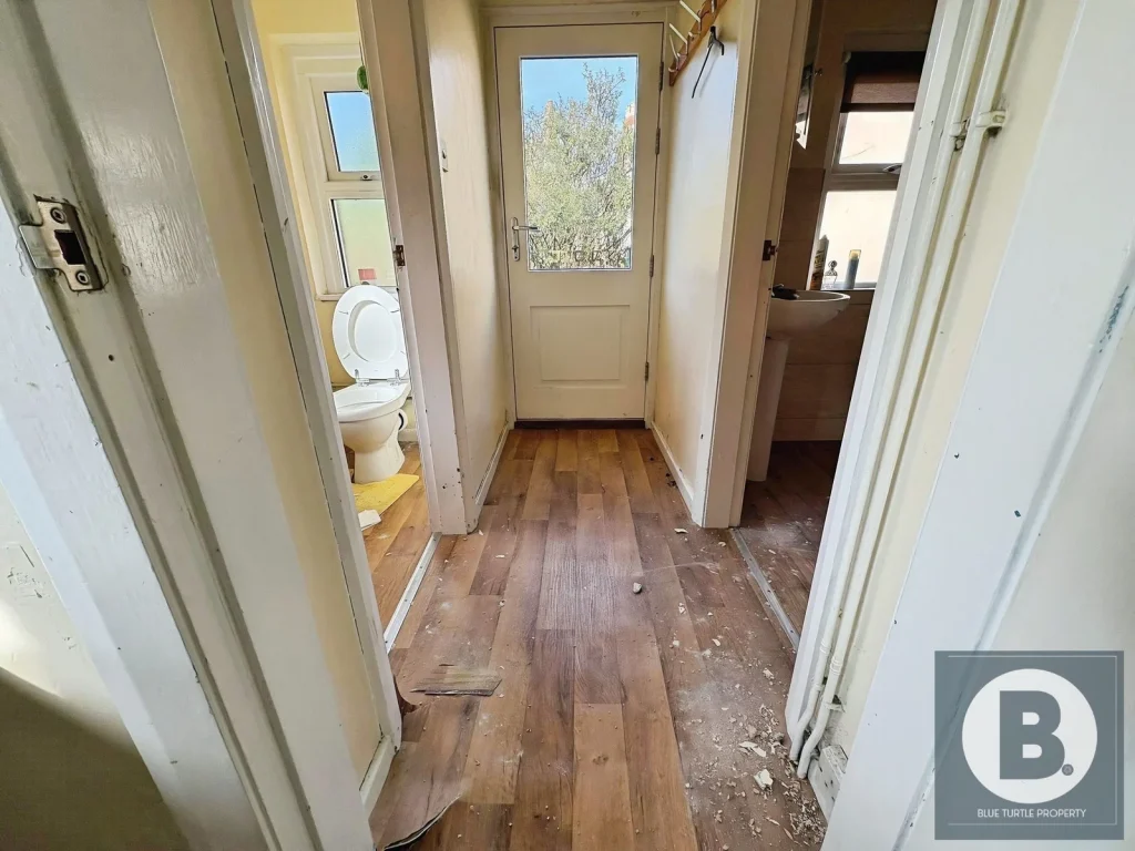 Small hallway providing access to rear and side gardens.